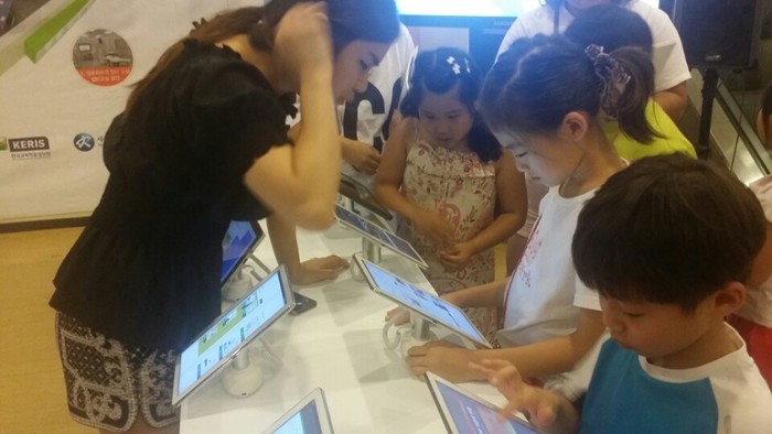 한국교육학술정보원의 협조로 현장에 비치된 스마트 패드를 통해 실제 디지털교과서를 체험하기도 한다.