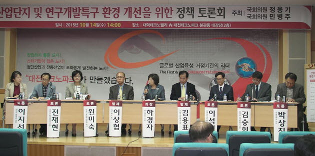 산업단지 및 연구개발특구 환경 개선을 위한 정책토론회가 14일 오후 2시 대덕테크노파크 본관동 대강당에서 정용기, 민병주 국회의원의 주최로 열린 가운데 악취문제와 관련한 다양한 의견들이 나왔다.