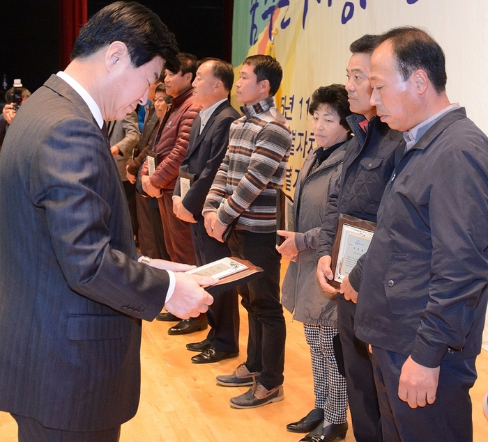 [세종TV=송기종기자] 세종특별자치시 농업기술센터(소장 신은주)가 제20회 농업인의 날을 맞아 6일 농어민문화체육센터에서 제4회 세종시 농업인 한마음 대회를 개최했다. 세종시 농업인단체협의회(회장 임붕철) 주관으로 열린 이번 행사는 세종시 농업인의 비전을 제시하고 농업‧농촌발전에 기여한 농업인을 격려하고자 마련했으며 이춘희 시장과 이해찬 국회의원, 임상전 시의회 의장, 농업인 등 1000여명이 참가했다. 행사는 ▲우수농업인 표창 ▲소형 농기계 및 부속 기자재 전시 ▲조치원 배 품평회 ▲한우와 돼지고기, 계란, 우유, 꿀 무료 시식회 ▲농특산물‧농산가공품 브랜드 전시 등의 내용으로 진행됐다. 이춘희 세종시장은“세종시는 도시와 농촌이 공존하는 도농복합형 특광역시로 무한한 성장 잠재력을 갖추고 있다.”며 “로컬푸드 운동을 통해 농가소득 증대를 도모하고 도시 소비자에게 안전한 먹거리를 제공함으로써 도‧농이 함께 발전할 수 있는 모델을 제시하겠다.”고 말했다.