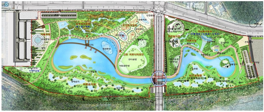 공원 내 시설에는 태양광 등을 이용하는 신재생에너지를 적극 도입하여 재생에너지의 활용으로 공원유지비용을 절감하는 방안을 모색하고, 저영향개발기법(LID : Low Impact Development)을 활용한 우수의 처리로 강우에 의한 오염원 배출을 최소화할 계획이다.