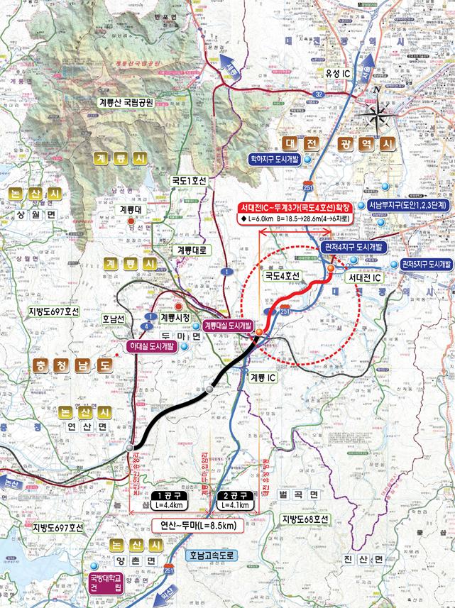 *회덕IC건설 : L=0.84km(GATE 6개소), 서대전IC~두계3가 도로확장 : L=6.0km(4→6차로)