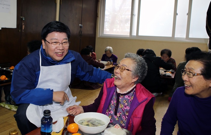 권선택 대전시장은 12일 오전 대전시 보건복지여성국 직원들과 함께 판암동 주공아파트에서 홀로 사시는 어르신과 장애인 200여분을 모시고 정성을 담아 직접 끓인 떡국을 나누는 뜻 깊은 송년회를 가졌다.
