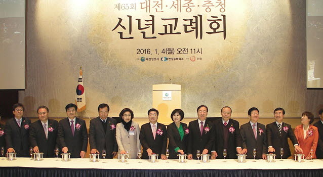 2016년 대전·세종·충청지역 신년교례회가 4일 오전 11시 DCC(대전컨벤션센터)에서 열린 가운데 서로 인사와 새해 덕담을 나눴다.