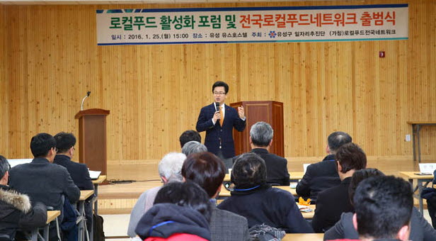 대전 유성구(구청장 허태정)가 25일 오후 3시 유성유스호스텔에서 유성구를 비롯한 전국 로컬푸드 관련 전문가, 공무원, 시민단체 등 70여명이 참석한 가운데 로컬푸드 활성화 포럼 및 로컬푸드 전국 네트워크 출범식을 개최했다.
