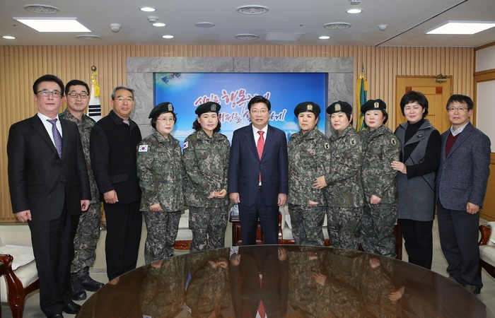 이어 권 시장은“지역 방위를 위해 몸소 예비군에 지원해 지역사회 발전을 위해 노력하는 여성예비군께 감사하다”고 말하고, 여성예비군을 격려하기 위해 전투용 방한복(야전상의)을 전달했다.