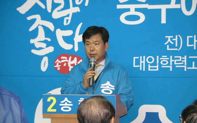 송 후보는 이어 "중구가 보수 성향이 강한 곳이라 험지라 말하곤 한다"며 "하지만 부당한 노무현 탄핵 당시 최초로 50%가 넘는 표를 권선택 현 시장에게 몰아주며 분노를 보여준 곳이 바로 이곳 중구이다. 더불어민주당 소속 현 대전시장을 만들어 준 곳도 바로 이곳 중구"라며 승리를 점쳤다.