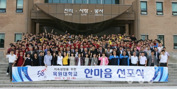 목원대는 20일 오전 11시 교내 도서관 광장에서 김원배 총장을 비롯 교직원과 학생 등 600여명이 모여 ‘한마음 선포식’ 출정식을 시작으로, 오는 22일(토)까지 시민과 학생들이 함께 참여하는 다양한 축제 형태로 진행된다.