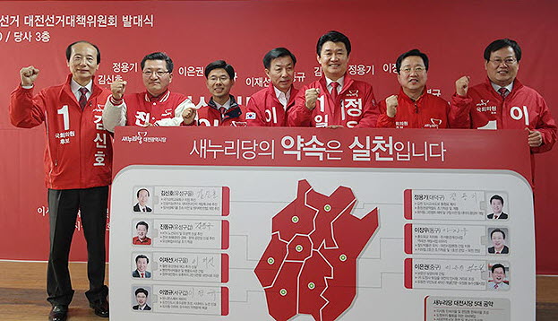 새누리당 대전시당이 27일 시당 강당에서 121명으로 구성된 선거대책위원회를 발족하고 각 후보들의 정책공약을 공개했다.