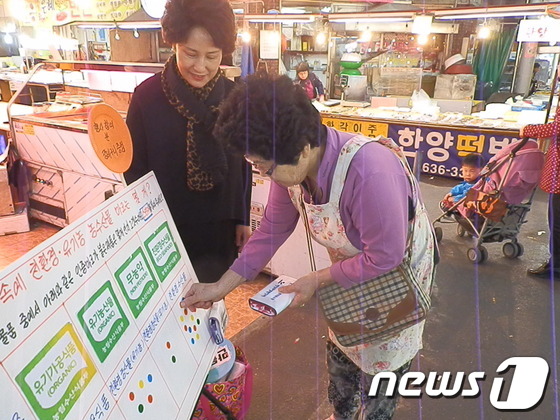 대전 한국소비생활연구원은 이날 전통시장을 찾은 시민들을 대상으로 길거리 캠페인과 퍼포먼스 쇼, 우리농산물 건강한 식탁 만들기, 농산물 제품 전시, 풍선 이벤트 '농산물에게 사랑을 채워주세요' 등 다채로운 행사를 펼쳤다.