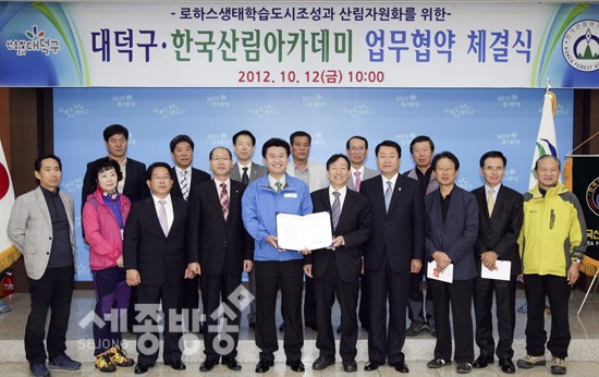 대전 대덕구(구청장 정용기)는 지난 12일 구청 중회의실에서 한국산림아카데미(원장 설동호)와 ‘로하스 생태학습 도시조성과 산림자원화’를 위한 업무협약을 체결했다.