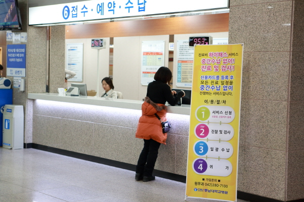 하이 패스 서비스 실시와 함께 1월 3일부터 ‘진료비 확인서 창구’를 개설하여 진료비 세부내역서, 영수증 재발행, 수납확인서, 연말정산 서류등 출력물을 한 곳에 통합시킴으로써 내원객들의 불편을 줄이고 편의 제공을 하고 있다.