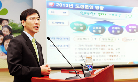 또 ▲경제통상실장은 중소기업 FTA 대응역량 강화 등 5건 ▲자치행정국장은 충남형 주민자치 등 5건 ▲문화체육관광국장은 문화여가 소외계층 정책지원 제고 등 3건 ▲농수산국장은 3농혁신 가속·가시화 등 3건 ▲복지보건국장은 저출산 고령화 대응 역량 강화 등 4건 ▲환경녹지국장은 기후변화 대응 온실가스 감축 등 4건 ▲건설교통항만국장은 공공디자인을 통한 아름다운 경관조성 등 4건을 내놨다.