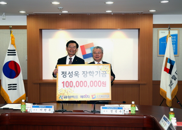 기업의 사회적 책임을 강조해 온 금성백조 정성욱 회장은 “우수한 인재가 미래의 대한민국을 책임진다”고 말하고 “국가의 핵심역량을 갖춘 인재를 육성하는데 밑거름이 되길 바라는 마음으로 대학발전기금 기탁키로 했다”고 말했다.