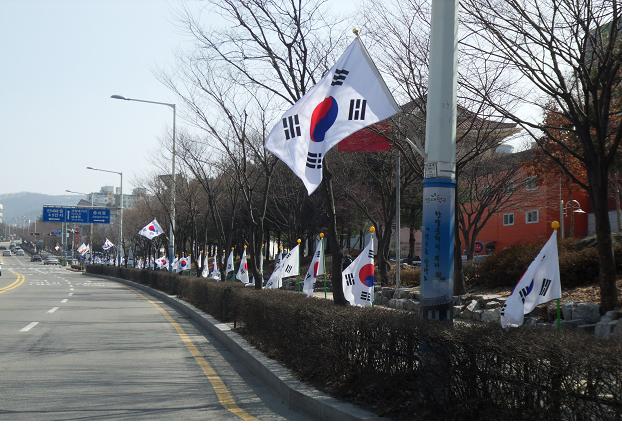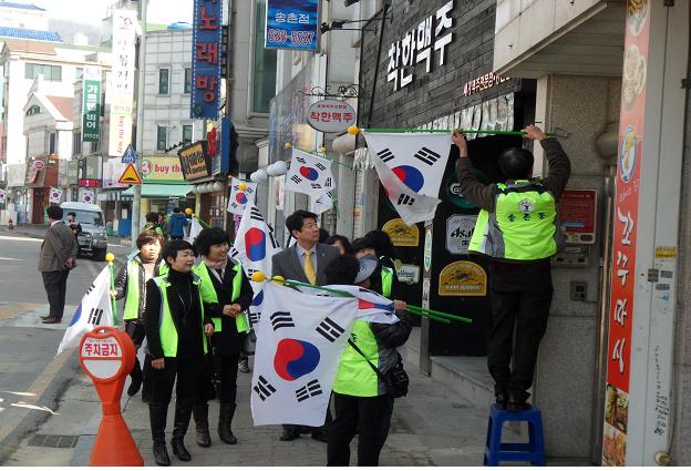 송촌동 주민센터(동장 이진산)는 제94주년 3·1절을 맞아 국권회복을 위해 산화하신 선열의 숭고한 자주독립의 정신을 기리고 구민들의 단결과 나라 사랑하는 마음을 드높이기 위해 송촌동 동춘당공원 앞 도로변과 송촌동 먹자골목에 통장, 주민자치위원 등 각 자생단체 회원들이 솔선하여 태극기 거리를 조성했다.