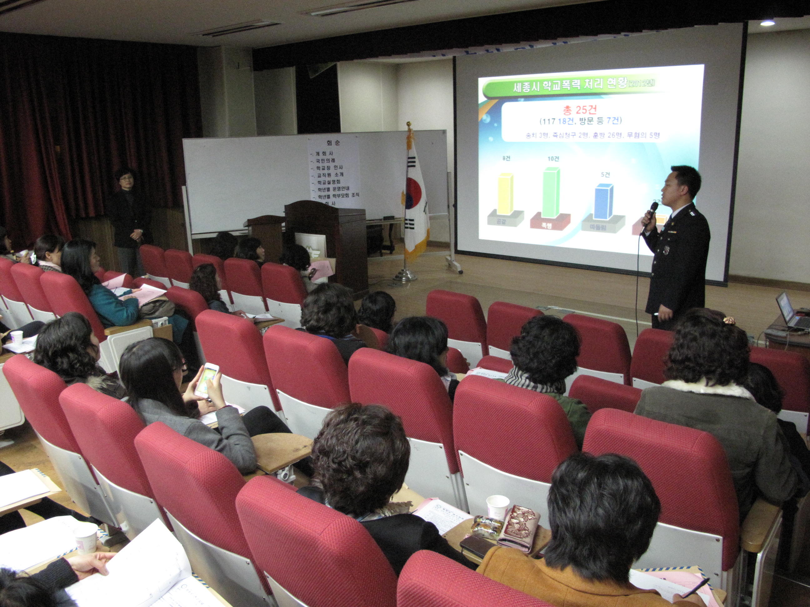 세종경찰서 (서장 심은석)는 7일 오후 7시 조치원여자고등학교에 방문해 자녀의 학교생활에 염려가 많은 학부모 대상으로 학교폭력 예방교육을 실시했다. <사진>