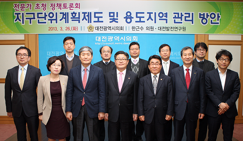 대전시의회(의장 곽영교) 한근수 의원(산업건설위원장, 유성 4, 새누리당)과 대전발전연구원은 26일(화) 대전시의회 대회의실에서‘지구단위계획제도 및 용도지역 관리방안’ 이란 주제로 정책토론회를 개최했다.