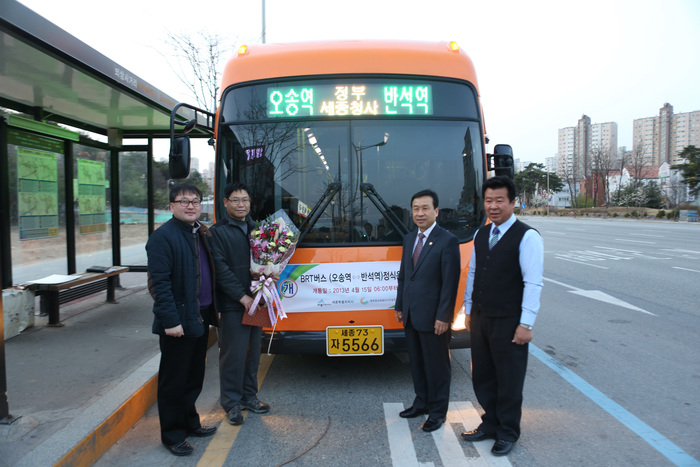 행정중심복합도시건설청(청장 이충재)은 15일 오전 6시를 기점으로 충북 오송역~정부세종청사~대전 반석역 구간(31.2㎞) BRT 운행을 정식으로 시작했다고 밝혔다.