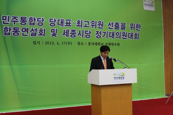 민주통합당 세종시당(위원장 이춘희)은 17일 오후 2시 홍익대 국제연수원에서 정기대의원대회 및 당대표 및 최고위원 선출을 위한 합동연설회를 개최했다.