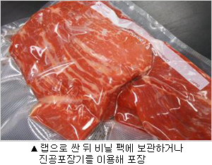 쇠고기는 김치냉장고나 냉장고 싱싱칸 등 저온에 랩이나 진공포장기를 이용해 최대한 공기를 빼고 보관한다.