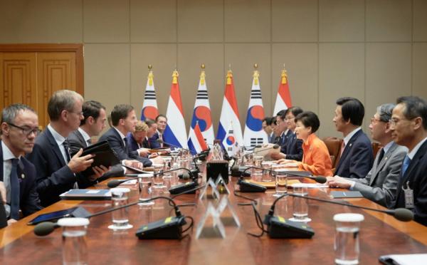 박근혜 대통령은 또 북핵 문제 대응과 관련해, 네덜란드가 EU 핵심국가이자 2018년 안보리 이사국 진출이 예정돼 있는 국제사회 모범국가로서 앞으로 UN 안보리 결의 이행은 물론 EU 차원에서 필요한 제재와 외교적 조치가 추진될 수 있도록 더욱 적극적인 역할을 해 줄 것을 당부했다.