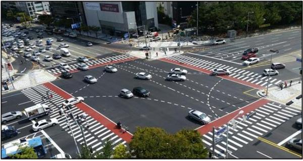 큰마을네거리 교차로 구간은 교통섬 3개소 및 우회전 차로를 설치해 교차로 통행시간이 기존 94.2초에서 64.3초로 약30초 단축돼 교통서비스 수준이 E에서 D로 향상될 것으로 전망했다.