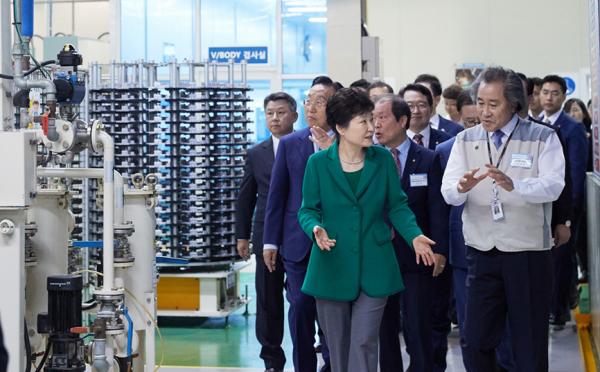 이어 박근혜 대통령은 핵심개혁과제 중 하나인 제조업혁신 3.0과 관련해 스마트공장 도입 현장인 무룡 구미공장을 방문했다.