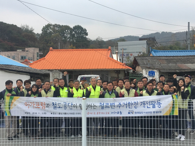 한국철도시설공단 충청본부(본부장 권영철)가 나눔의 정부3.0을 적극 실현하기 위하여 11월 3일(목) 아가포럼(공동대표 한만희․정장원)과 함께 호남선 인근 마을 주거환경 개선활동을 펼쳤다고 밝혔다.