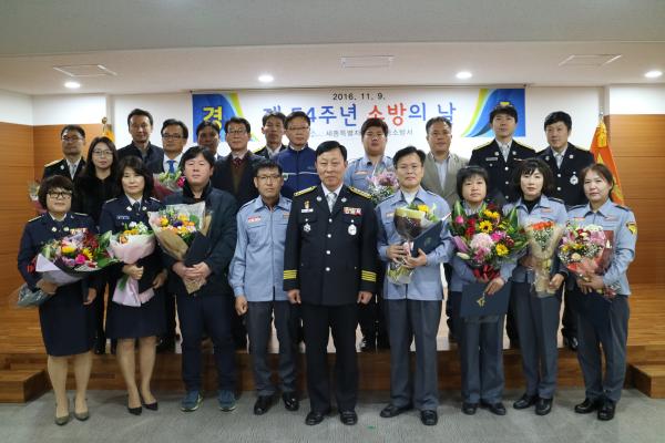 기념식에서 재난 현장 시민 보호에 공을 세운 한솔119안전센터 최중구 소방장, 한솔동 박미숙 여성의용소방대장 등 유공자 5명에게 국민안전처 장관상을 수여했다. 또 그 외 총 21명의 모범 소방대원이 각종 표창을 받았다.