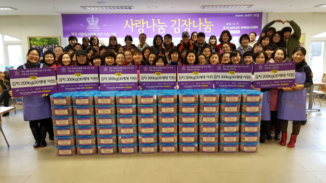 지난 15일 대전시 서구 하나님의 교회 세계복음 선교협회(총회장 김주철 목사)가 목회자, 성도, 이웃등 80여명과 함께 담근 김장김치 2,000㎏를