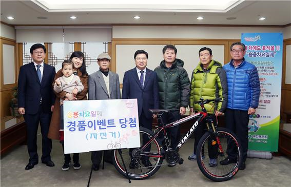 특히 자전거 당첨자에 대해서는 지난 22일 권선택 대전광역시장이 참석한 가운데 시민경청실에서 승용차요일제 활성화를 위한 다양한 의견을 수렴한 후 경품을 전달하고 축하 · 격려했다.