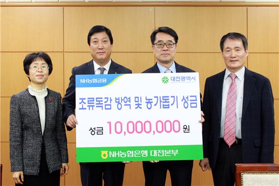 NH농협은행 대전영업본부 안병서 본부장은 전달식에서 “고병원 AI로 힘들어 하는 가금농가의 시름을 덜어주고, 연말 어려운 이웃들이 조금이나마 따뜻한 겨울을 날 수 있도록 도움을 주고 싶다”며 기탁 소감을 밝혔다.