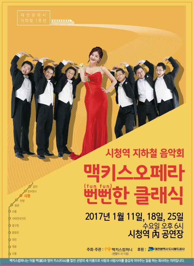 대전도시철도공사(사장 김민기)는 이번 달 매주 수요일 18시에 시청역 예술무대에서 맥키스오페라단의 ‘도시철도 힐링 클래식 음악회’를 개최한다고 밝혔다.
