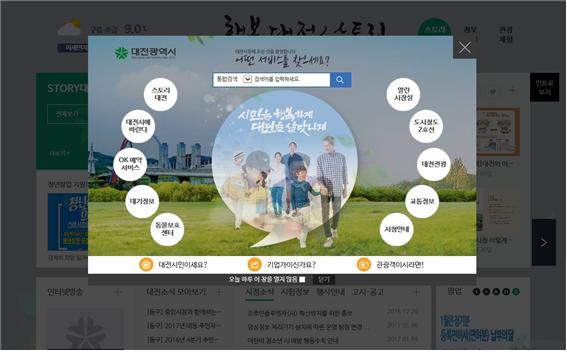 또 소개창 개념을 도입하여 시민, 기업, 관광객 등 주요 방문객들의 관심 정보를 맞춤형으로 제공하고 대표 화면에서도 스토리대전, 정보민원, 관광체험 세 분류로 나눠 시민들이 필요한 정보를 보다 쉽게 찾아 볼 수 있도록 화면을 구성했다.