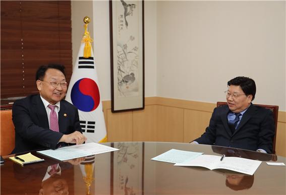 오후 4시부터 진행된 이번 접견에서 권 시장과 유 부총리 겸 기재부장관은 질병과 재난사고로부터 시민을 더욱 안전하게 지키기 위한 공공의료 확충은 국가와 지자체의 공동의무라는데 의견을 같이 했다.