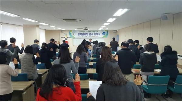 [세종TV-황대혁 기자] 대전평생교육진흥원은 지난 10일 원내 세미나실에서 전 직원 대상으로『청탁금지법 준수 서약식』을 개최하고 결의를 다졌다고 밝혔다.