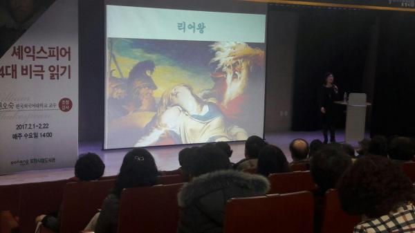한편, 앞서 지난 1일 1강 <햄릿>, 8일 2강 <리어왕> 강연 모두 시민들의 열정과 사색의 열기로 어울마루를 가득 채웠으며, 오는 22일 마지막 강의로 <맥베스>가 예정되어 있다.