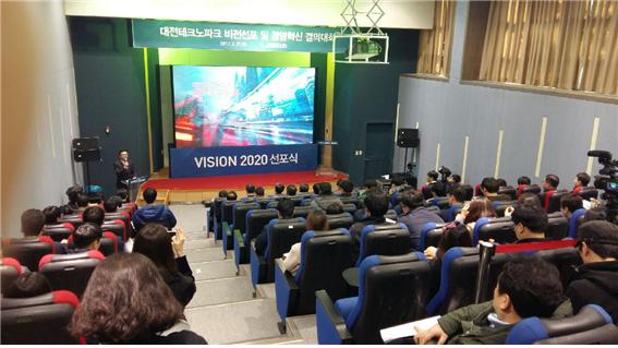 대전테크노파크 Vision 2020 선포를 통해 지역산업과 기업의 앞서 달리는 동반자(pacemaker)로서 단기적으로는 2020년을, 장기적으로는 2030을 준비하는 경영혁신 원년으로 삼아 ▲벤처생태계 활성화 ▲글로벌 스타기업 육성 ▲산업간 융복합화 선도 ▲전통산업의 르네상스 개척 ▲새로운 시대를 선점하는 스타기업 육성을 위한 구체적인 목표를 제시했다.
