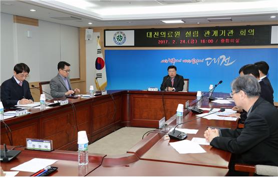 [세종TV-황대혁 기자] 대전광역시는 지난 24일 오후 4시 시청 중회의실에서 권선택 시장, 한현택 동구청장, 이중화 의료원설립추진위원회 부위원장, 박남일 도시공사 사장과 관련 실국장이 참석한 가운데 그 동안의 대전의료원 설립 추진상황을 점검하고 향후 추진계획을 논의하기 위한 『대전의료원 설립 관계기관 회의』를 개최했다고 밝혔다.