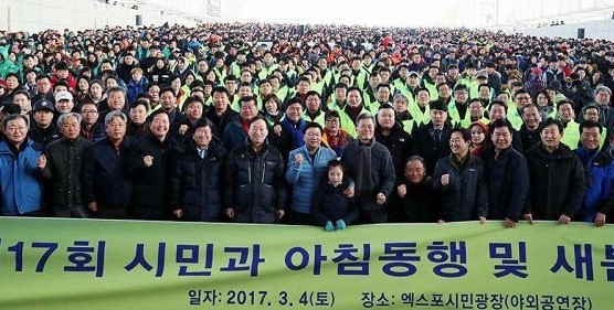 한편 이날 '시민과 아침동행' 행사에는 김경훈 대전시의장, 설동호 대전시교육감, 장종태 서구청장, 허태정 유성구청장을 비롯해 44개 시민단체 및 시민 1만여명이 참석했으며, 4개 팀으로 구분해 갑천변과 한밭수목원을 걸으면서 청결활동을 펼쳤다.