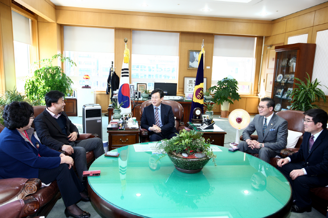대전시의회 김경훈 의장은 7일 오후 2시 의장접견실에서 충북 옥천군의회 유재목 의장 등 방문단을 접견하고 지역농특산물 판매 등 상호 협력방안을 논의했다.