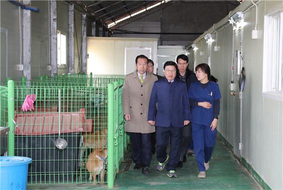 첫 방문지로 유성구 갑동에 위치한 동물보호센터를 방문한 권 시장은 연중무휴 운영되는 센터의 시설 곳곳을 둘러보며 열악한 환경임에도 사양관리직무에 여념이 없는 직원들의 애로사항을 살폈다.