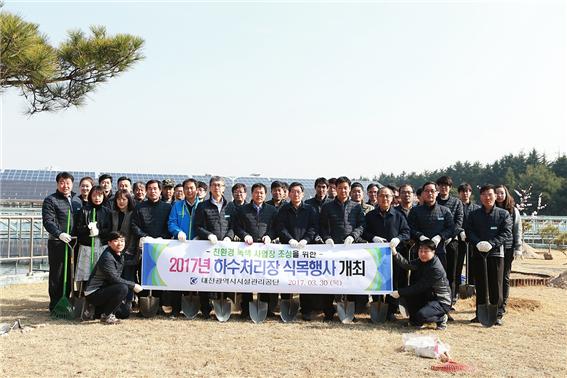 [세종TV-황대혁 기자] 대전시설관리공단은 제72회 식목일을 맞아 지난 30일 원촌동 하수처리장에서 임직원과 함께 ‘친환경 녹색사업장 조성을 위한 하수처리장 식목행사’를 개최했다고 밝혔다.