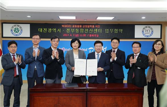 [세종TV-황대혁 기자] 대전광역시는 지난 7일 시청 중회의실에서 정부통합전산센터와 과학적인 자료를 정책 수립 시 활용하기 위한 빅데이터 공동활용 상호협력 업무협약을 체결했다고 밝혔다.