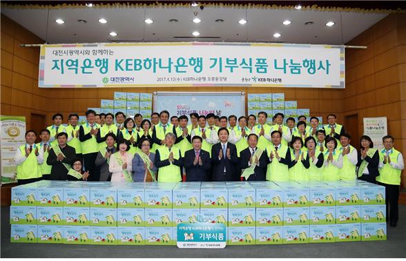 [세종TV-황대혁 기자] 대전광역시는 지난 12일 오후 2시 KEB하나은행 오류동 사옥 10층 강당에서 올해 첫 번째 어려운 이웃을 위한 ‘찾아가는 기부식품 나눔의 날’행사를 가졌다고 밝혔다.