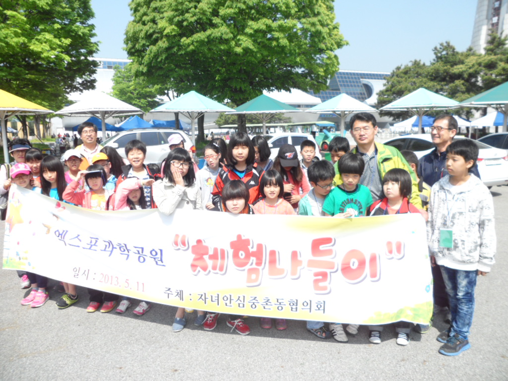 11일 중촌동 자녀안심협의회(회장 신규섭)는 5월 가정의 달을 맞이하여 저소득가정 어린이들과 함께 엑스포과학공원 나들이를 다녀왔다. 이날 행사는 엑스포과학공원 내 전시관?영상관 관람, 전통놀이(연.팽이 만들기), 교통문화 체험 등 다양한 볼거리와 색다른 문화체험이 제공되어 학생들에게 큰 호응을 얻었다.