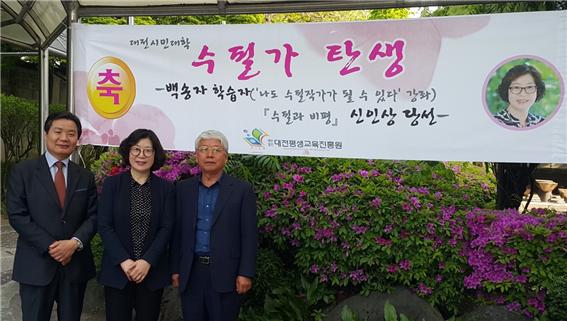 [세종TV-황대혁 기자] 대전평생교육진흥원이 운영하는 대전시민대학에서 수강생 백송자 씨(56세)가 대표적 문예지인 월간 '수필과 비평'2017년 4월(제186)호를 통해 수필가로 등단했다고 밝혔다.