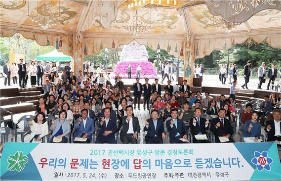 [세종TV-황대혁 기자] 대전시는 권선택 대전광역시장이 지난 18일 서구 방문에 이어 24일 유성구 족욕장에 위치한 ‘두드림공연장’을 방문해 유성구민 200여명과 경청토론회를 이어 갔다고 밝혔다.