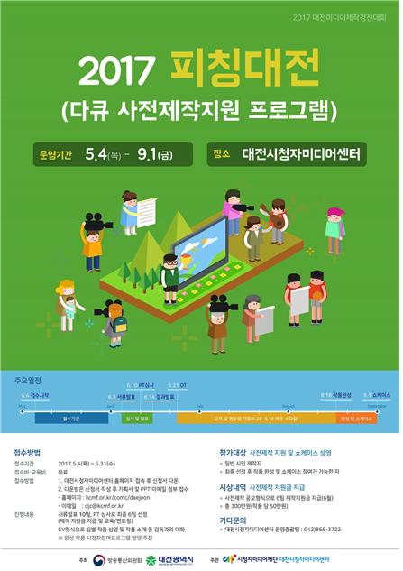 한편 ‘2017 피칭대전’은 건전한 미디어 환경 조성과 시청자 방송 참여 활성화를 목표로 우수한 콘텐츠를 발굴 · 제작 지원하는 프로그램으로 방송통신위원회와 대전광역시가 주최하는 ‘2017 미디어제작경진대회’의 주요 프로그램 중 하나다.