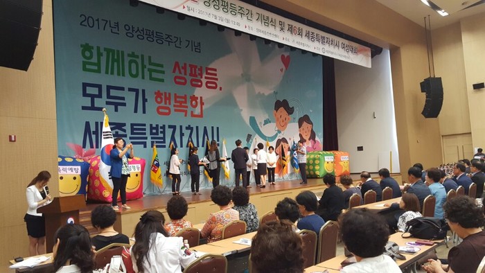 세종특별자치시(시장 이춘희)는 3일 정부세종컨벤션센터(SCC)에서 이춘희 시장과 최교진 세종시 교육감, 성정숙 여성단체협의회장을 비롯, 양성평등유공 표창 수상자 등 200여명이 참석한 가운데 ‘2017년 양성평등주간 기념식 및 제6회 여성대회’를 개최했다.