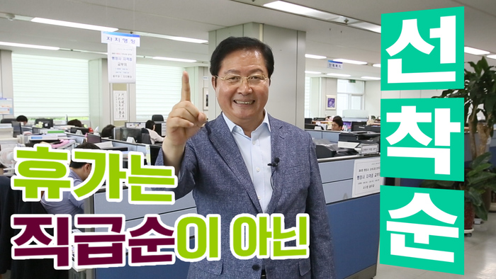 ‘휴가는 직급순이 아닌 선착순’을 주제로 요즘 화제가 되는 CF 영상을 직원과 구청장이 패러디해 누구나 휴가를 편하게 갈 수 있는 직장 분위기를 만들 것으로 기대를 모으고 있다.